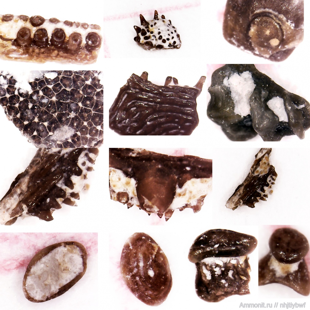3 ряд. фото одного объекта, скорее всего, небные зубы палеониска
