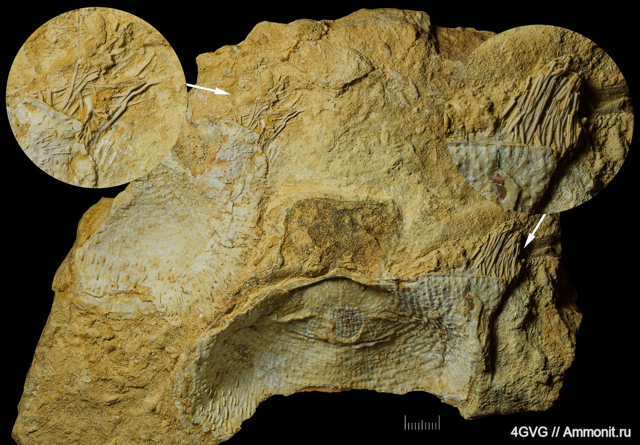 Иглы выполняли не защитную функцию, а помогали этой крупной продуктиде удерживаться от погружения в илистый грунт.
