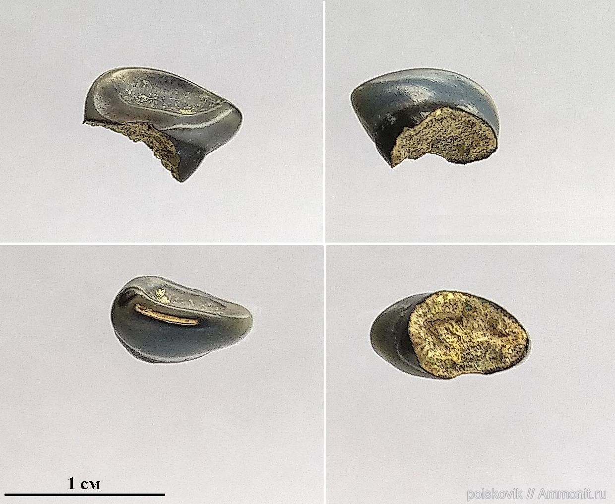 Маленький зуб Пикнодонта(в 4-х проекциях) из палеогеновых отложений в окресностях села Пролом