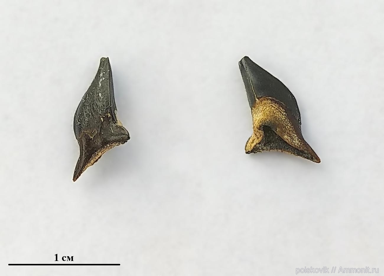 Зуб рыбы-? (в 2-х проекциях) из палеогеновых отложений в окресностях села Пролом