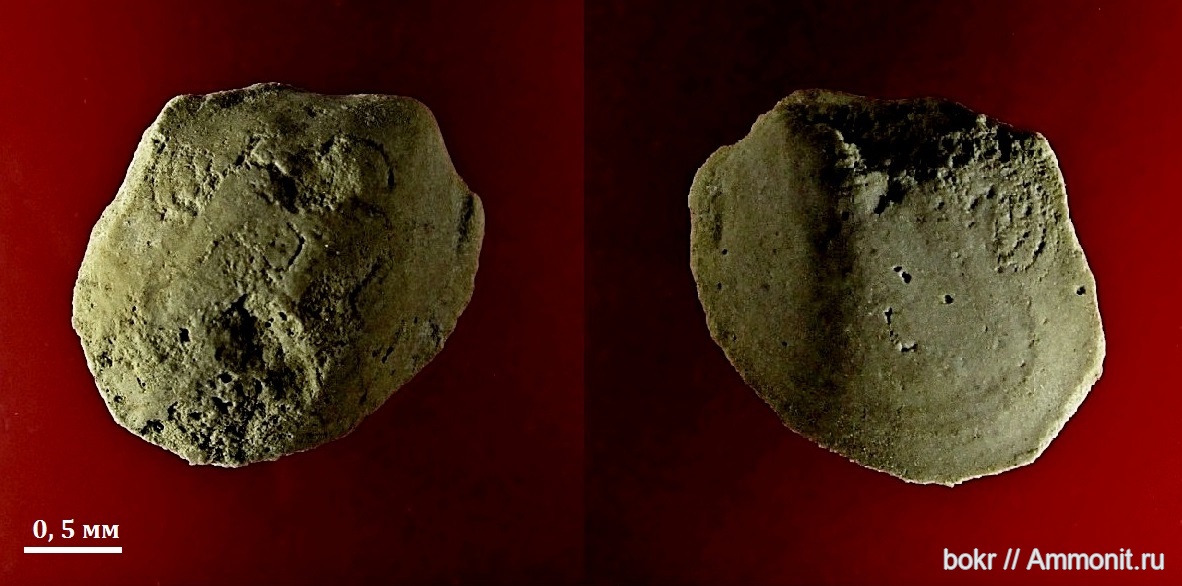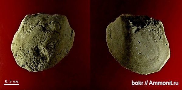 Данный экземпляр двустворки (ядро) был собран в п. Горки в 2015 г, кукрузерский горизонт. Образец интересен необычными задними мускульными отпечатками - они представляют ряд полкруглых бороздок. Обычно мускульные отпечатки представлены овальными площадками боле-менее приподнятыми.