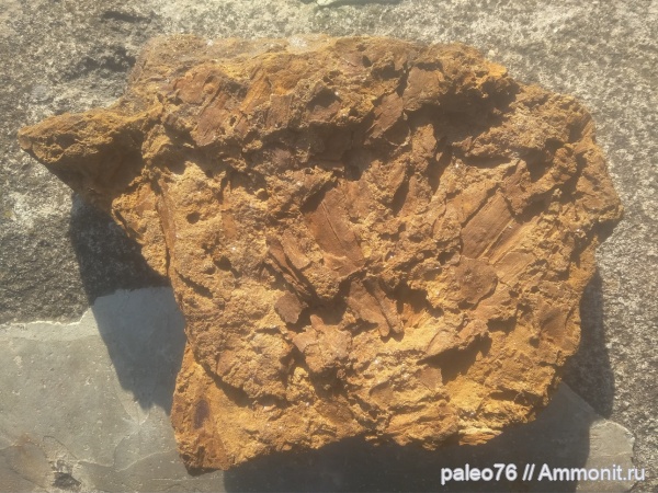 Плитка железистого песчаника с отпечатками древесной щепы, размером 30 см., найденная в недавней поездке в ГПП "Глебово".