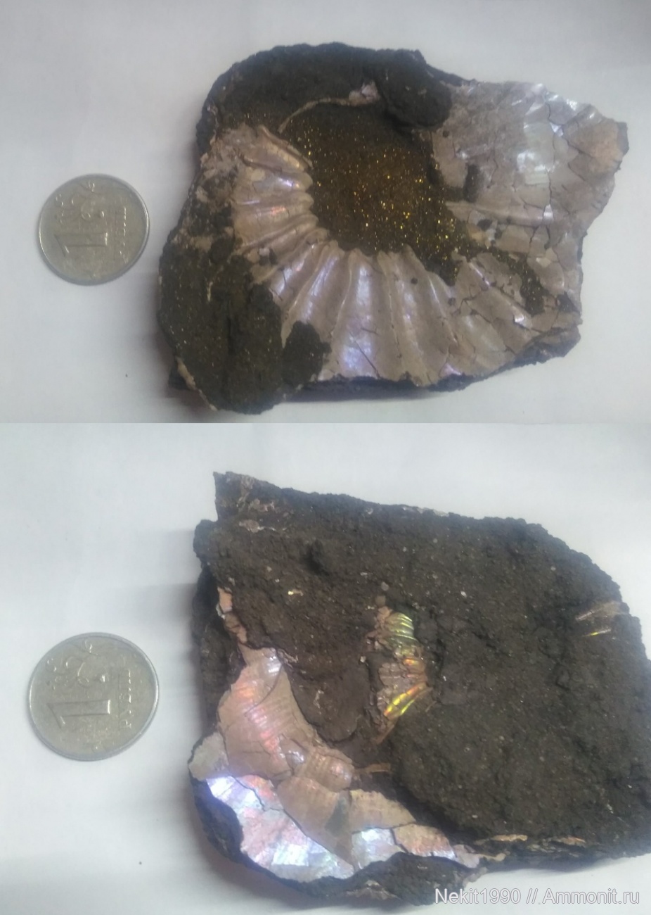 Можно попробовать пневмоинструментом или ударным электрогравёром, но на особо хороший результат рассчитывать не стоит... Есть смысл продолжать, пока пирит отделяется от раковины. | ||||||