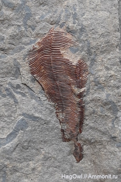 Конулярия из нижнепермских геликоприоновых мергелей дивьинской свиты, саргинского горизонта,верхнеартинского подъяруса, артинского яруса, нижнего отдела пермской системы Ключиковского карьера Красноуфимска