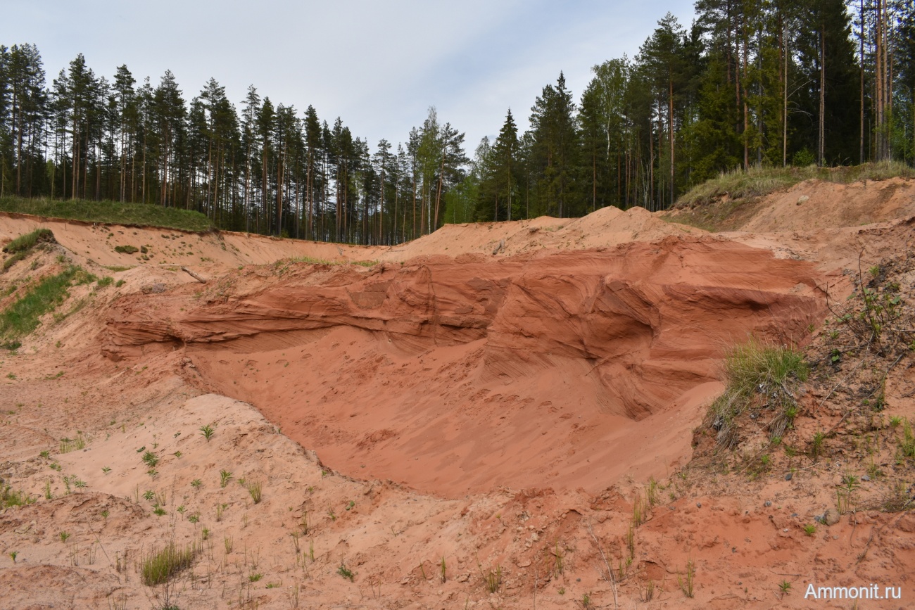Обнажение красных песчаников (арукюлаская свита среднего девона?) в карьере рядом с д. Хотнежа Волосовского района Ленинградской области.
