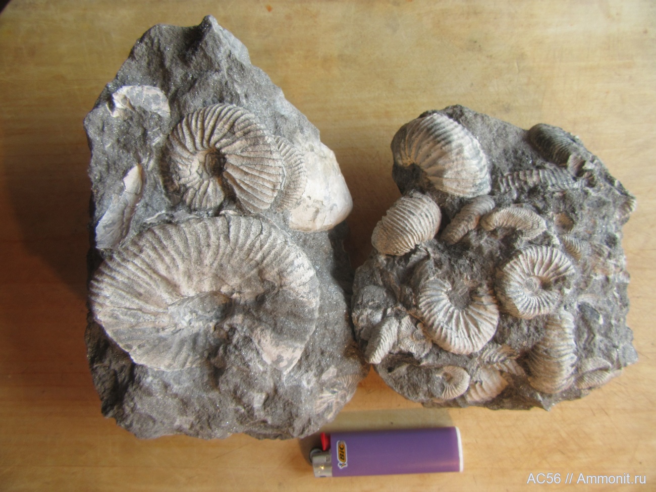 На левом штуфе - Siberites cf. ramulicosta (Pavlov). Он с двух- а потом с трёхраздельными рёбрами. Euryptychites ex gr. astieriptychus - он с более сложными ребрами и сохранившемся отпечатком устья.