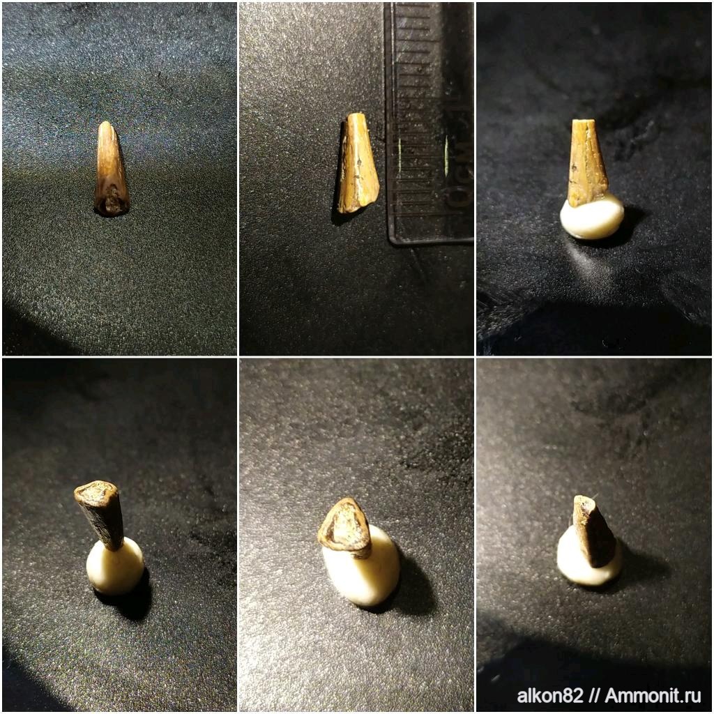 В отмое нашли с сыном кончик зуба (ни начала ни конца нет) на рыбий не похож, на акулий тем более, но и у завра в Мелу не встречал в сечении такой треугольной формы???