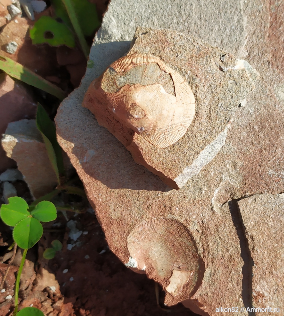Были в одном месте Гжели (на старом карьере глиняном), там очень много плит серо-зеленого песчаника в старых отвалах. При расколе попадаются брахиоподы.