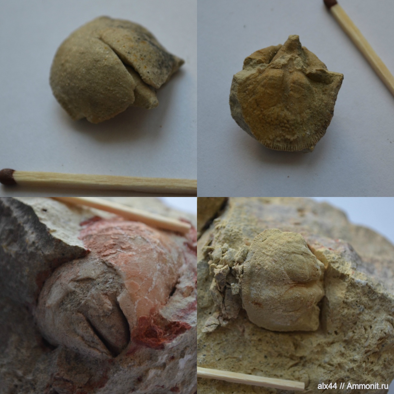 3 фото ядер Vellamo sp. и одно - снизу и слева - Porambonites sp. | ||||||