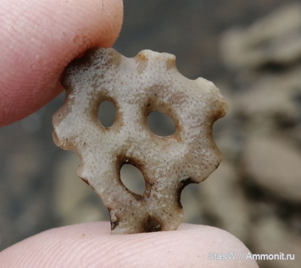 Вот только не понятно,мшанка найдена на пляже,разве есть там обнажения волховского горизонта? | ||||||