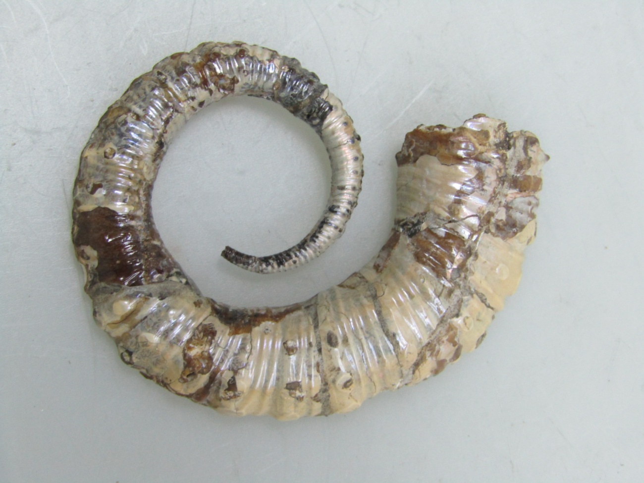 Исходная спираль была поломана в процессе захоронения и имела несколько "горбатостей" при росте оборота раковины. Потом в процессе фоссилизации спираль "раздвинули" септориальные трещены которые затем заполнились кальцитом. Всё это поправил. Фото1. Исходная форма. Фото2. Инструменты. Фото3. Технологические разрезы. Фото4. Удалить жилки кальцита. Фото5 Перед склейкой.