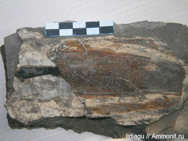 Хорошо чернильный мешок! Рядом с ним видны фоссилизированные мускульные волокна | ||||||