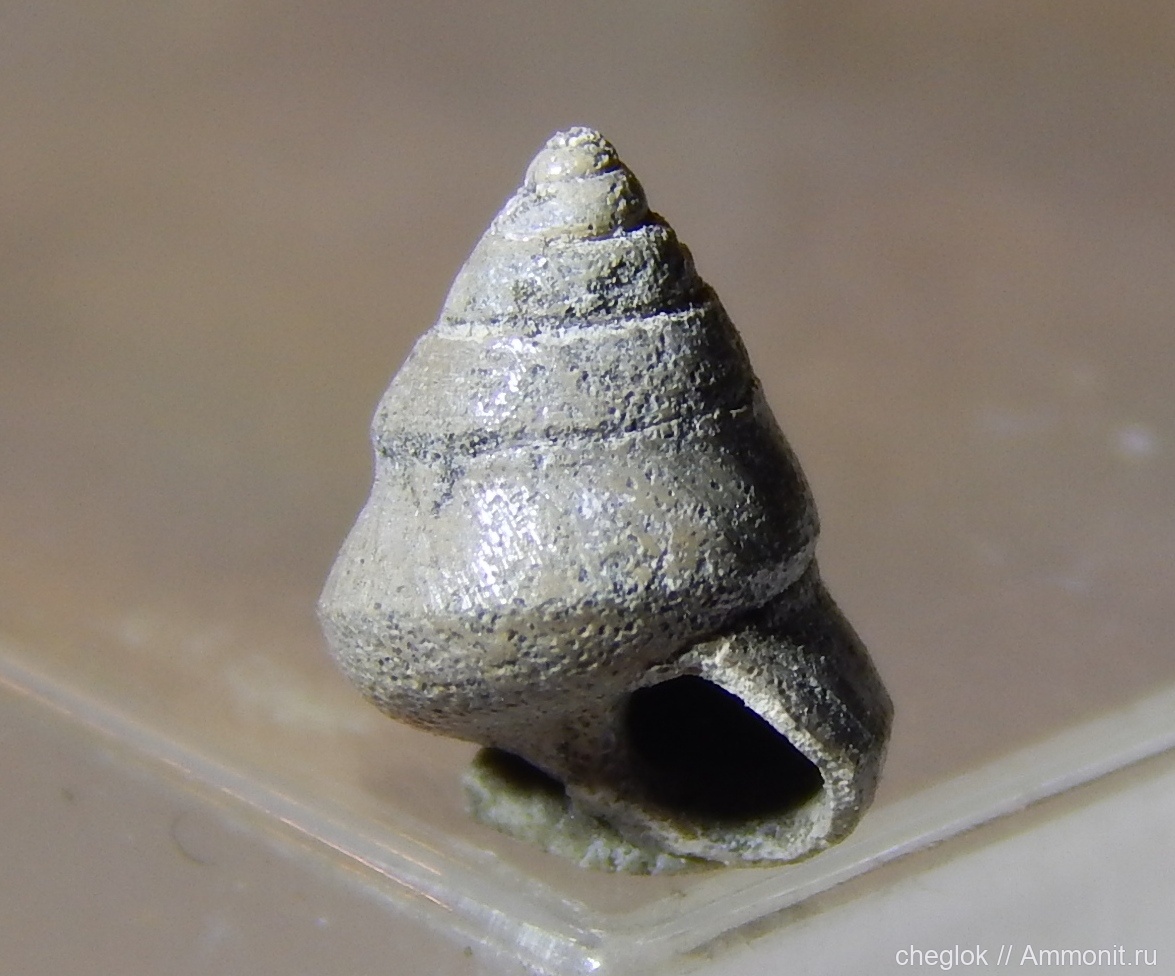 Здравствуйте. Ни на что заранее не настаиваю, но выраженное у образца сильное различие между углом при вершине(первые 3-4 оборота) и углом схождения поздних оборотов является отличительной чертой рода Proconulus. У Герасимова есть образец, наиболее похожий на представленную гастроподу. Gerasimov, 1992 tab.XII fig.14 Proconulus seminudus Gerasimov, sp. nov. Hol.1559. Датируется оксфордом, но является единственным образцом, сочетающим отсутствие спиральной исчерченности и форму соответствующих оборотов. Возможно переотложение. | ||||||
