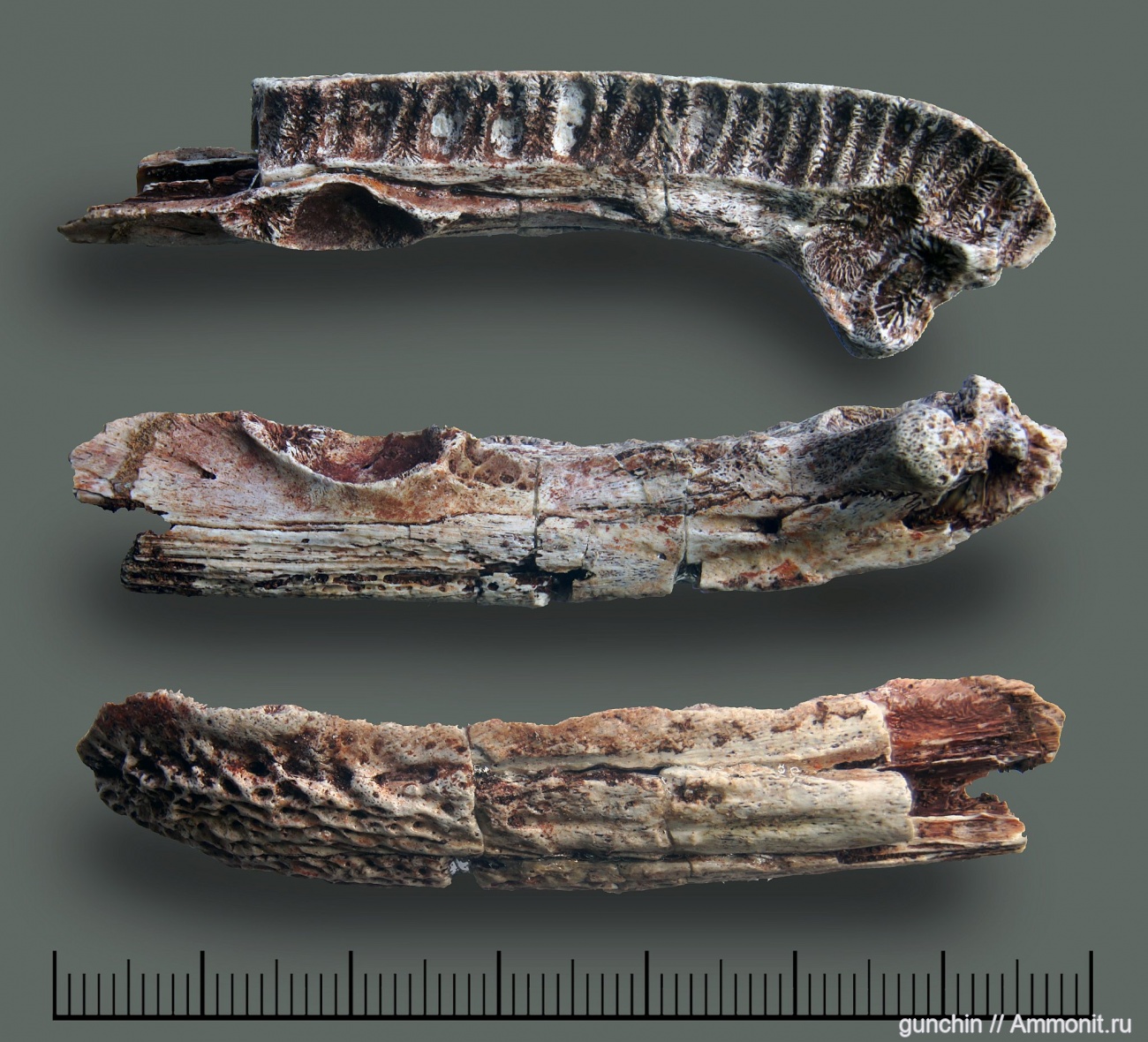 По предварительному определению И.В. Новикова: неполная левая ветвь нижней челюсти лабиринтодонта, вероятно Benthosuchus gusevae.