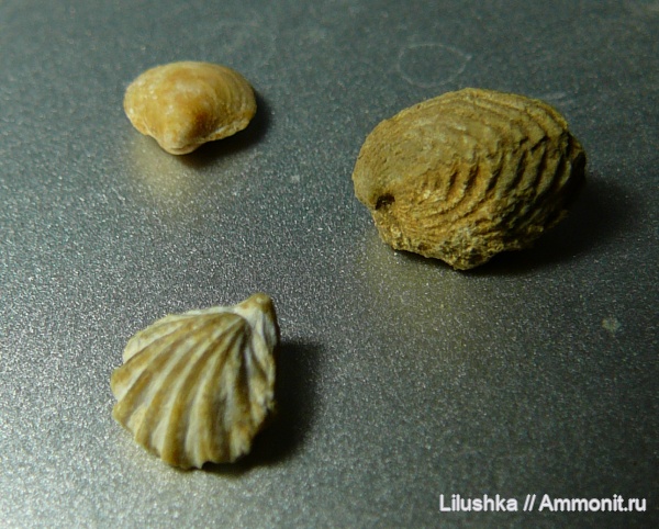 Для определения вполне узнаваемы пока только брахиоподы с радиальными складками: нижняя с редкими и широкими рёбрами - Hustedia remota (Eichwald, 1860),