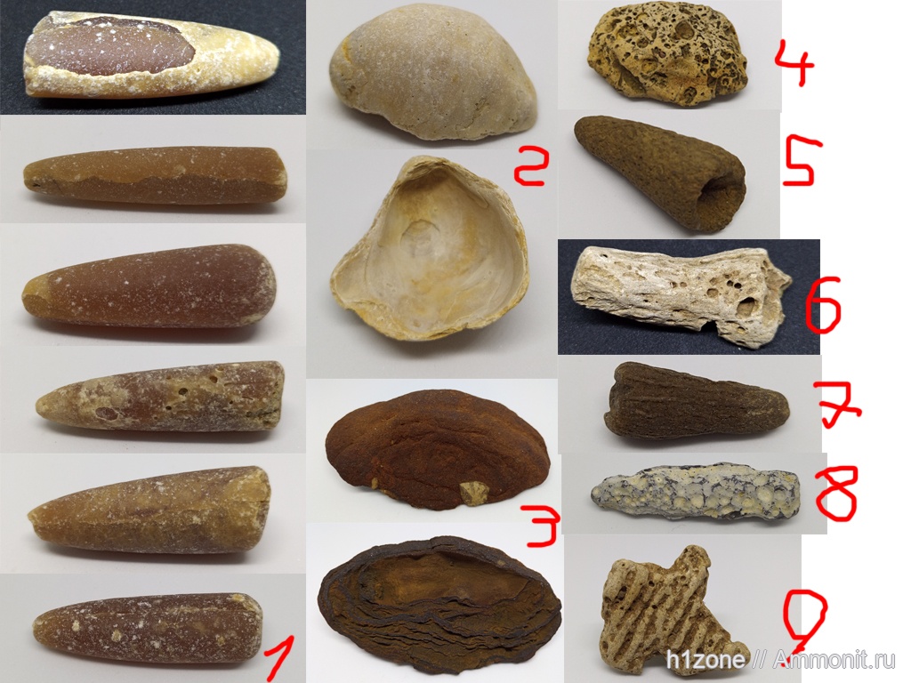 1: Ростры Белемнитов разных размеров (до 6 см)