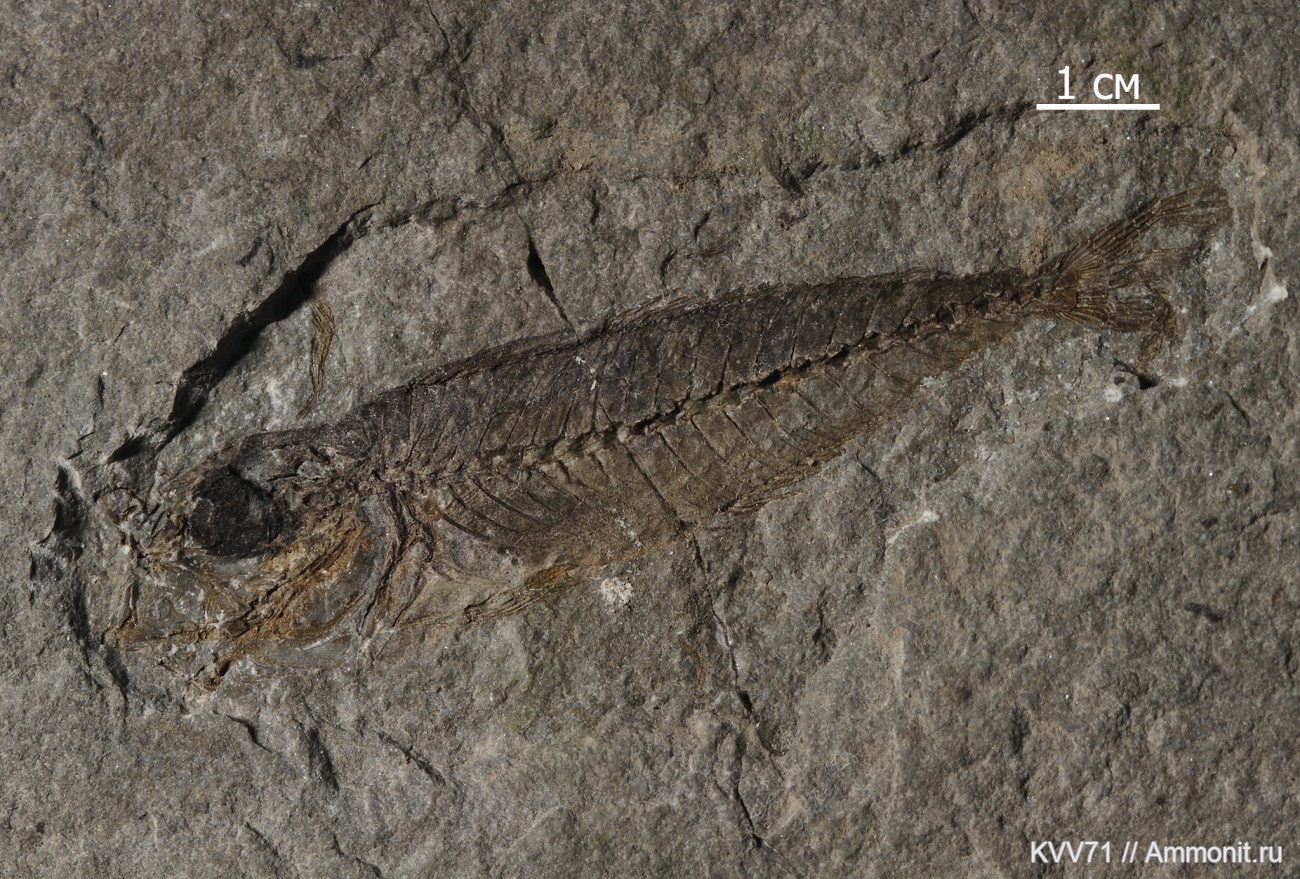 Размер рыбки около 8 см. Встречается в сарматских отложениях Пшехи относительно редко. При расколе плиты была ярко золотистого цвета, через неделю потемнела.