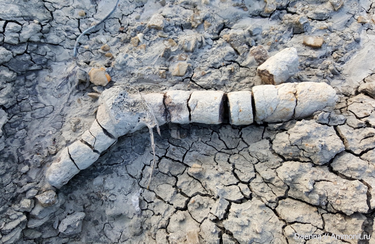 Полевое фото из последнего рейда 05.09.2020. На поверхности аргиллитового карьера (о котором я рассказывала здесь) часто попадаются фрагменты таких каменных "колбасок".