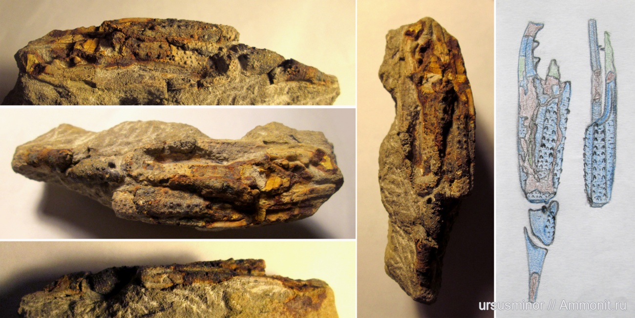 Несмотря на плохую сохранность, эта находка крайне интересна: это явно тот же вид, что и образец: «Загадочная клешня рака». Благодаря этой новой находке проясняются многие новые детали строения клешней этого вида, сильная гетерохелия (асимметрия клешней). К тому же в этом слое вообще очень редки находки парных клешней (я такое нахожу впервые).