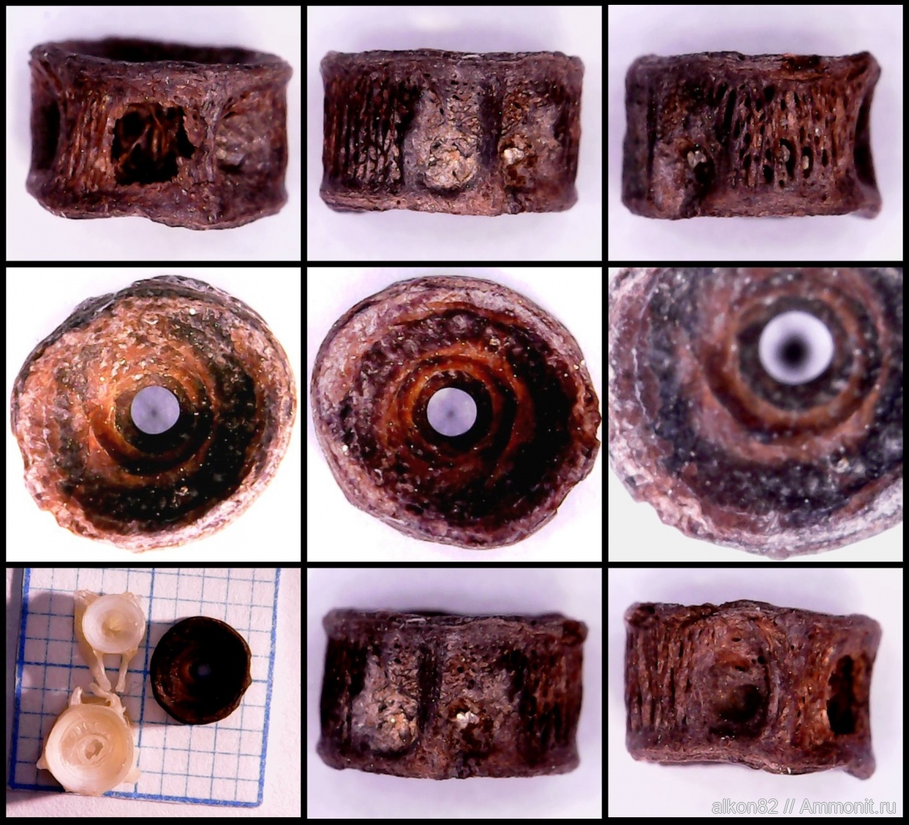 Интересные фото и анализ! Детальных фото филевских позвонков ИМХО не хватает, т.к. обычно показывают лишь их количество. По виду вероятно позвонок акулы, т.к. на нем выемки, а не отростки | ||||||