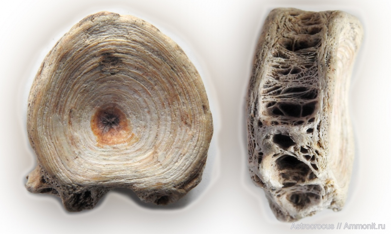 Интересный! Скорее всего рыбы, действительно, у ихтиозавров таких концентрических колец не видел. Но форма похожа и на грудной ихтиозавра. Не помешали бы фото со всех сторон, особенно боков. В любом случае позвонок здесь вверх ногами | ||||||