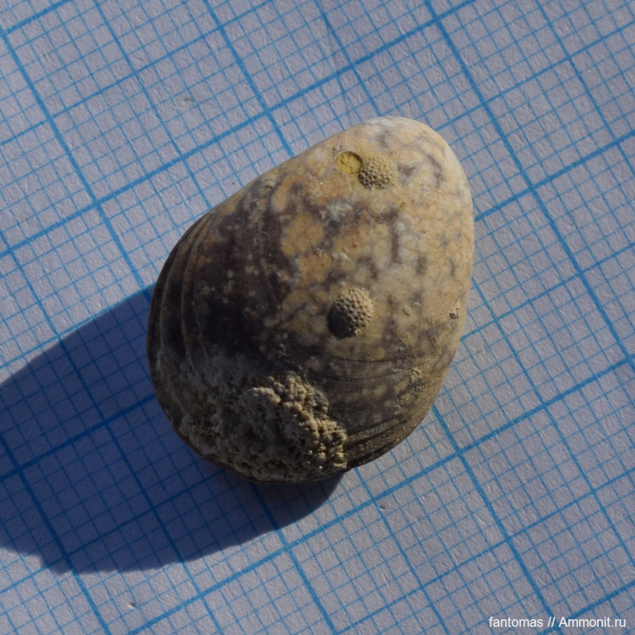 Видимо мшанка росла уже когда брахиопода была мертва и просто лежала на дне. Но взаимодействие интересное! обычно просто отверстия попадаются | ||||||