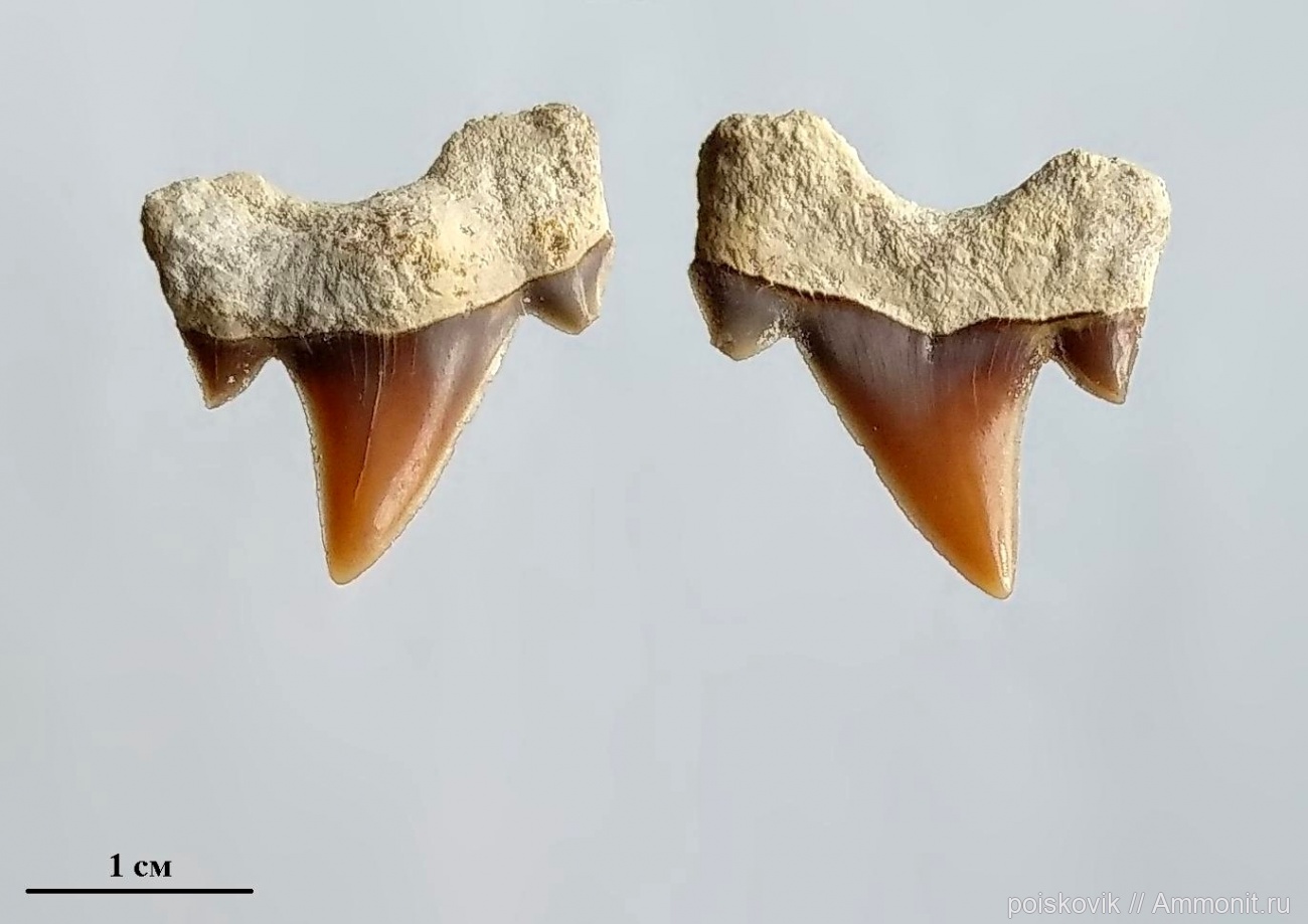 Зуб акулы (в 2-х проекциях) из датских мшанково-криноидейных известняков Загайтанской скалы