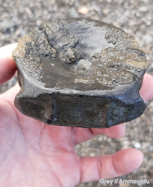 Хорошо сохранившийся позвонок, частично пиритизированный. Откровенно говоря - случайная находка. Найден в сентябре, в прибое на обратном пути. Доп.фото: Фото с места находки; Доп.фото 1; Доп.фото 2; Доп.фото 3; Доп.фото 4;