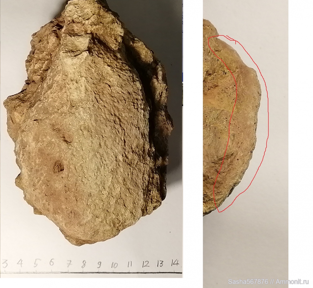 Очень давно нашёл эту штуку. Для одиночного коралла она очень плоская, да и узор не тот. На правом фото красным обведен его край.