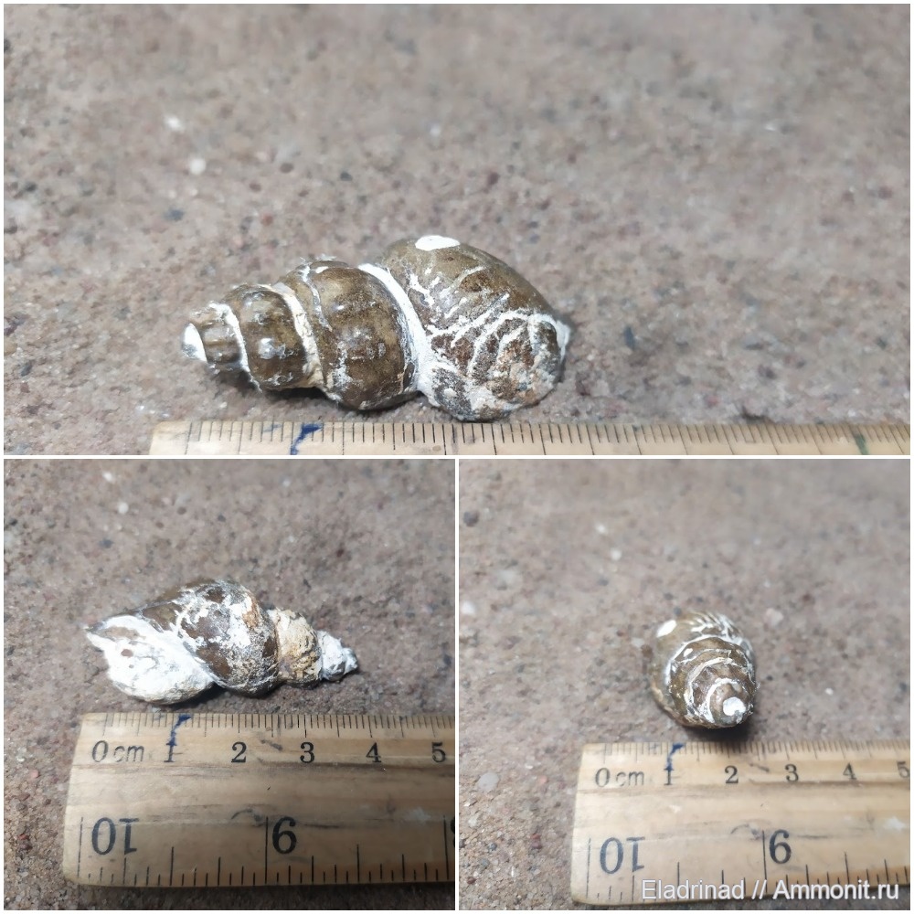 Практически целая гастропода, найденная на верхнемеловом карьере Меловые горы в Гродно. Предположительно perissoptera acuta, но буду рад любым уточнениям.