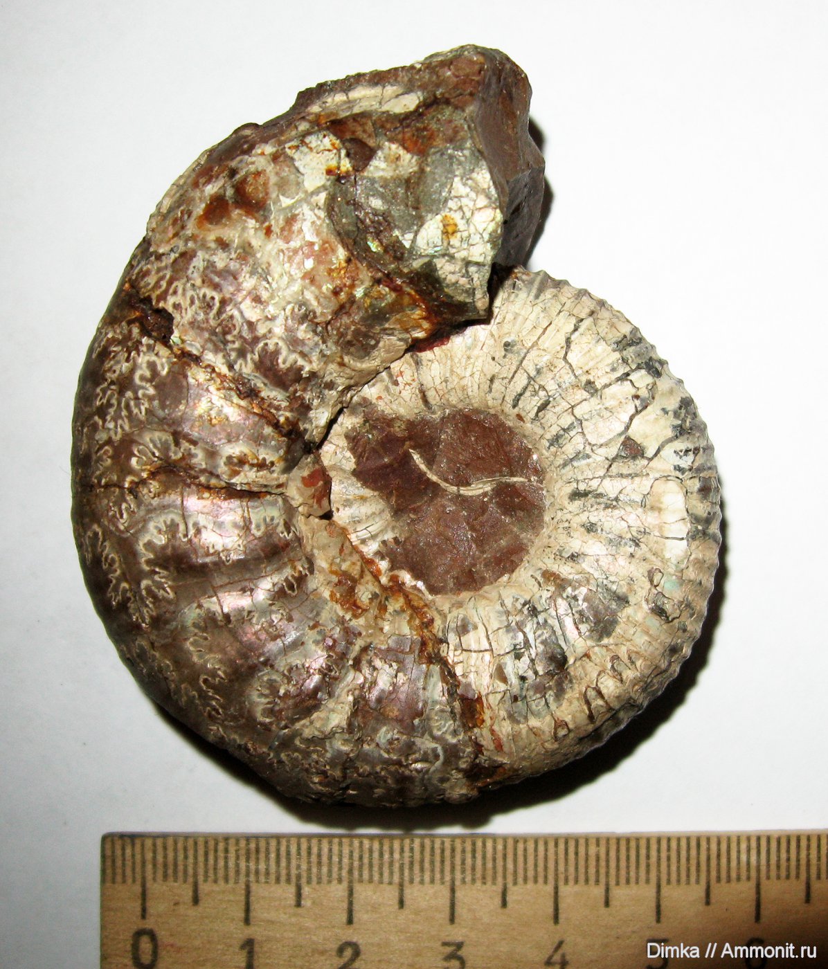 Образец подарен мне много лет назад моим хорошим знакомым - Новиковым Андреем, за что, пользуясь возможностью, выражаю ему самые теплые слова благодарности! По его словам этот аммонит был найден в Курской области, карьер КМА (Курская магнитная аномалия).