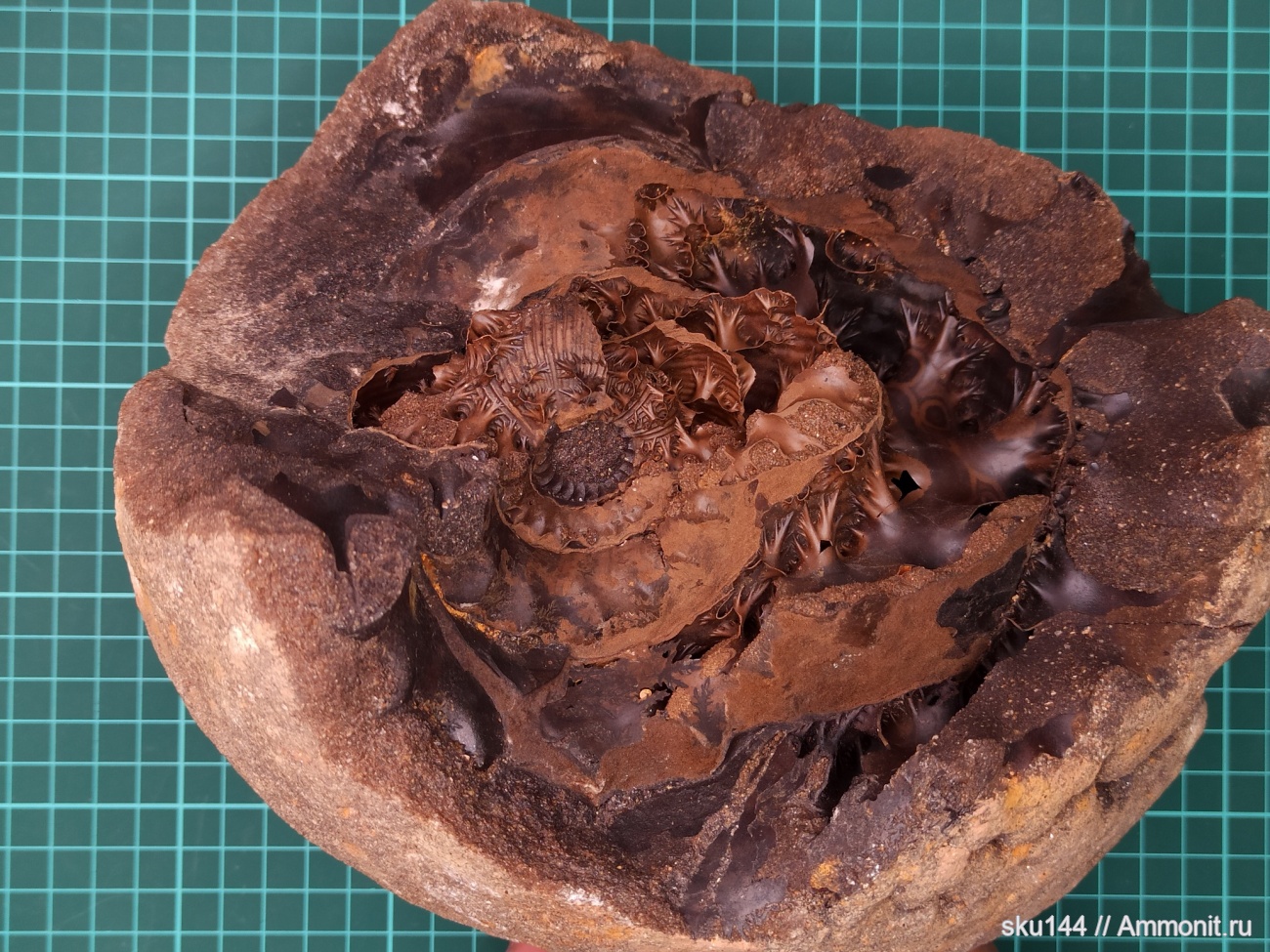 При ударе кувалды об эту конкрецию, аммонит внутри жалобно крякнул, оставив после себя вот такое вот зрелище. Как говорится - кровь, кишки, разворотило.. Тут даже и не распилишь никак ни вдоль, ни поперёк. Жирненький, 28см. Красив, не смотря ни на что)