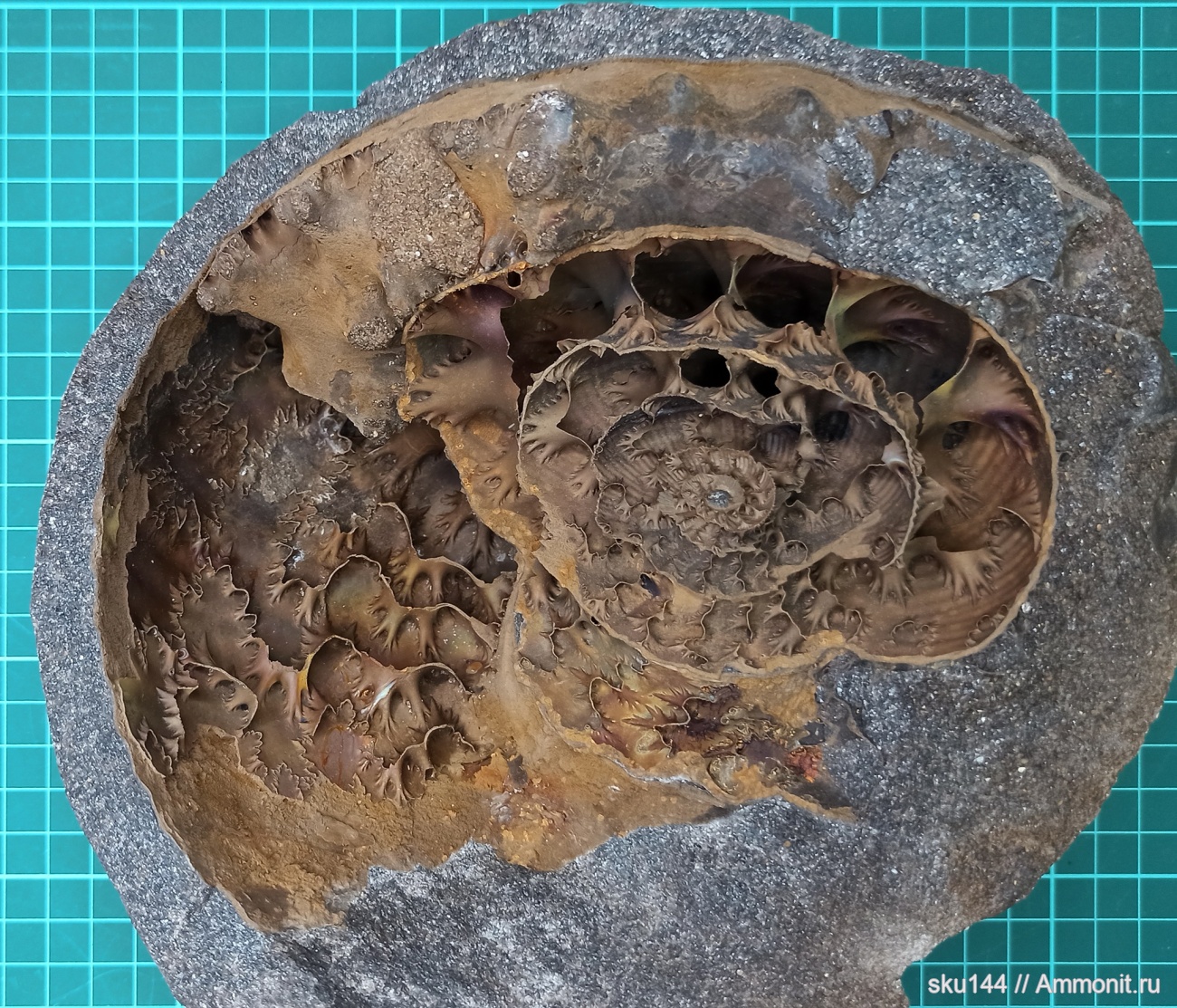 Ещё один типичный пример неудачно расколовшейся фосфоритовой конкреции - такие пустые аммониты очень редко раскалываются как-то иначе. Зато в полной мере раскрывается их внутренний мир :)