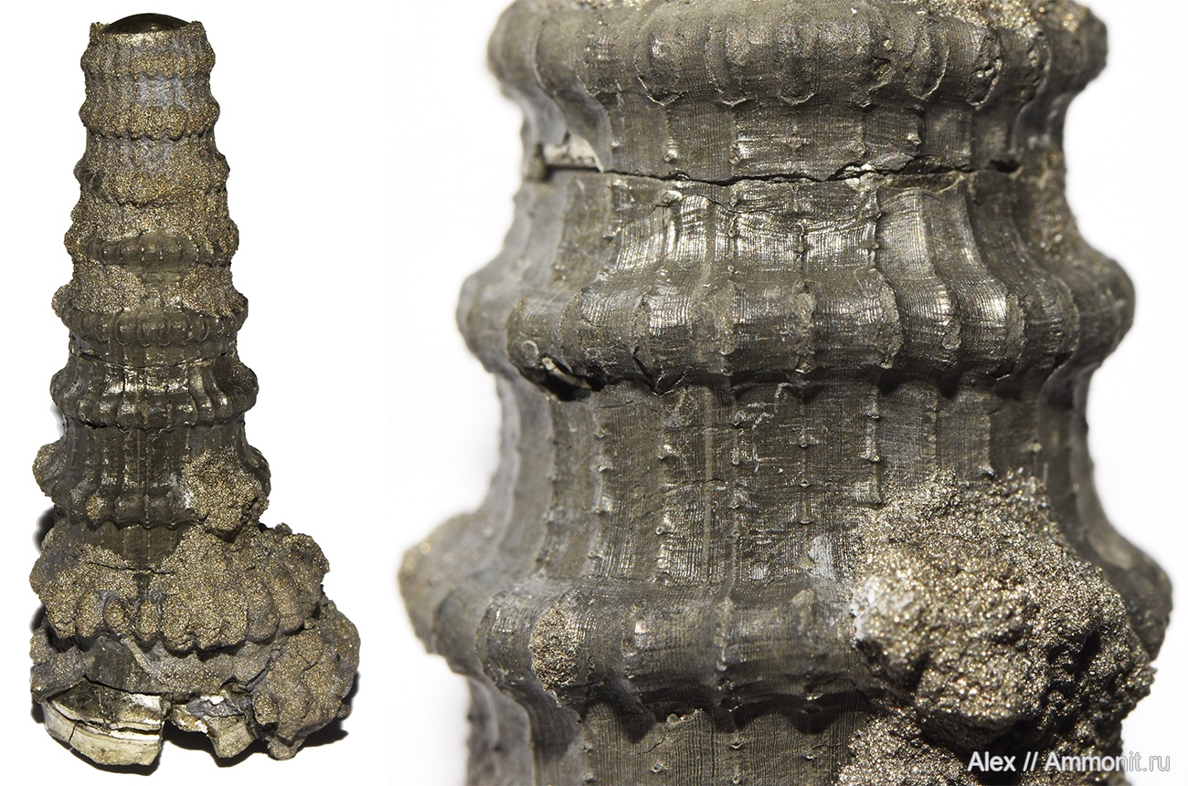 Да, на продольных ребрах остатки маленьких шипов. Судя по всему шипы были короткими и пустотелыми, но очень многочисленными. | ||||||