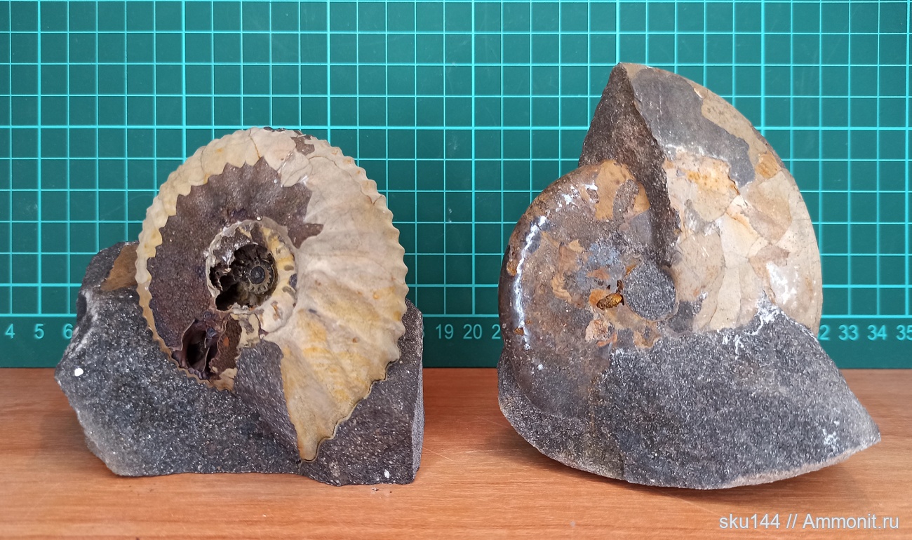 Иногда при извлечении раковины часть породы никак не хочет отделяться, и дальнейшие попытки отбить ее приводят лишь к разрушению аммонита. А в какой-то момент моё чувство прекрасного подсказало, что так даже лучше! Такие образцы отлично пойдут в качестве сувениров на полку для друзей и знакомых.