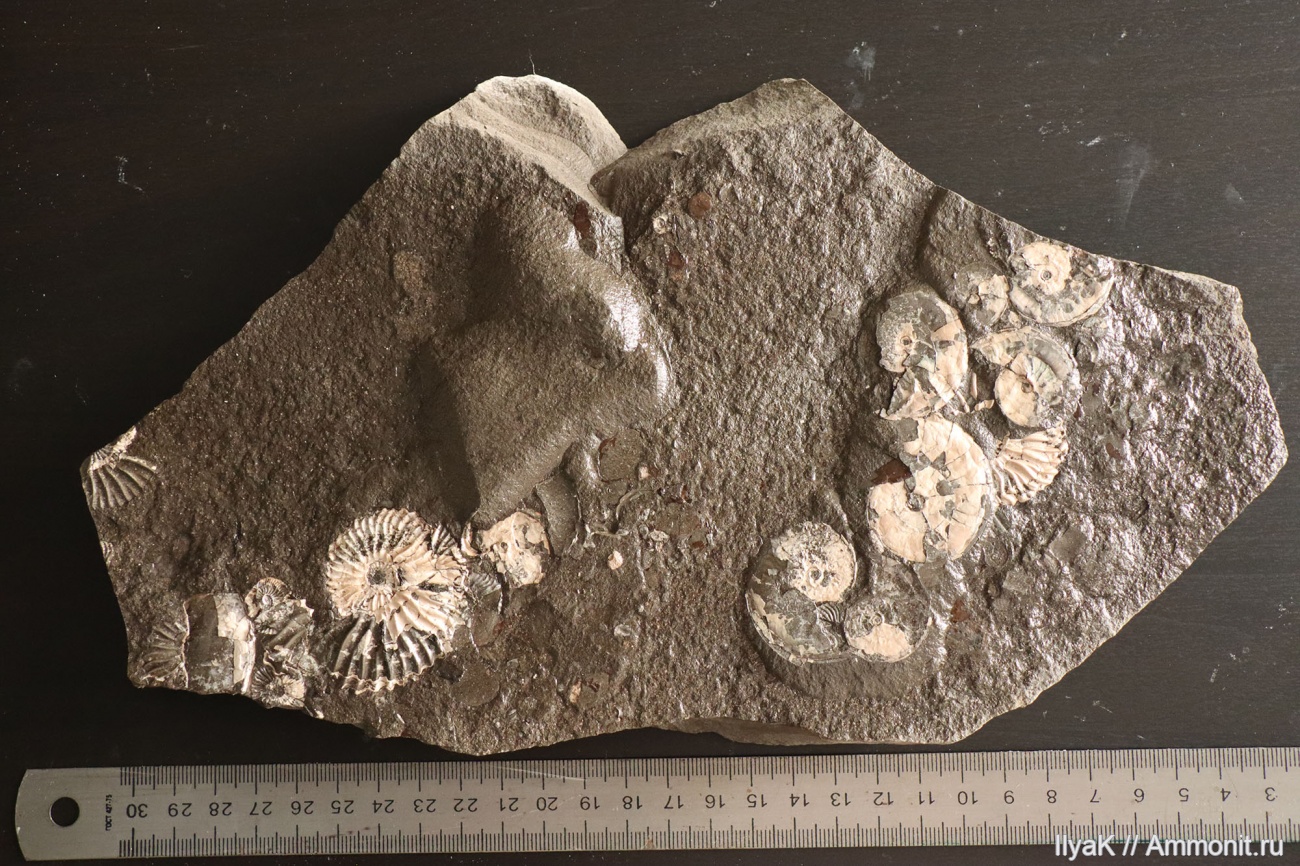 Чешуя сверху в центре и справа на аммоните. Есть другая пластинка, где чешуи больше.