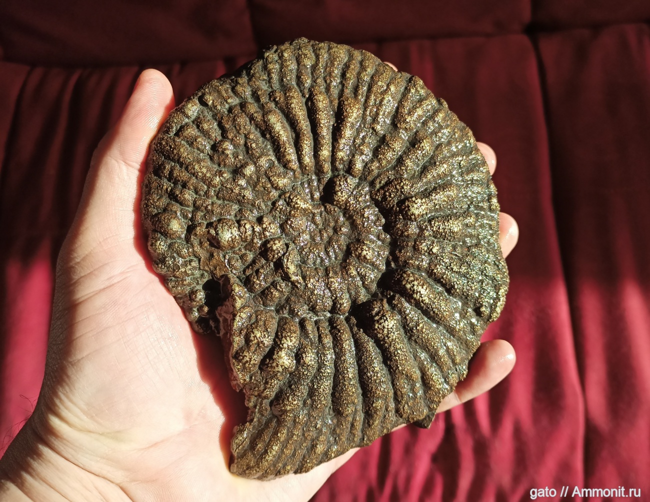Добавлю, пожалуй, и свою пиритовую лепешку. Вероятно, Sarmatisphinctes. При диаметре 15 см ширина лишь 1 см. Это лучшая из большой выборки. Визитная карточка тамошнего кимериджа.