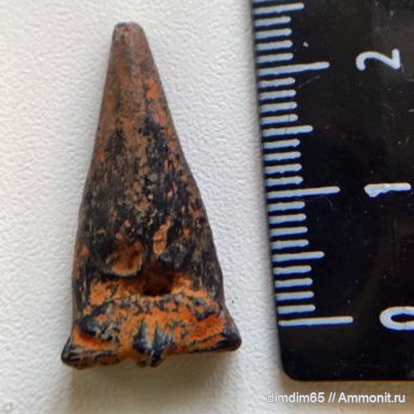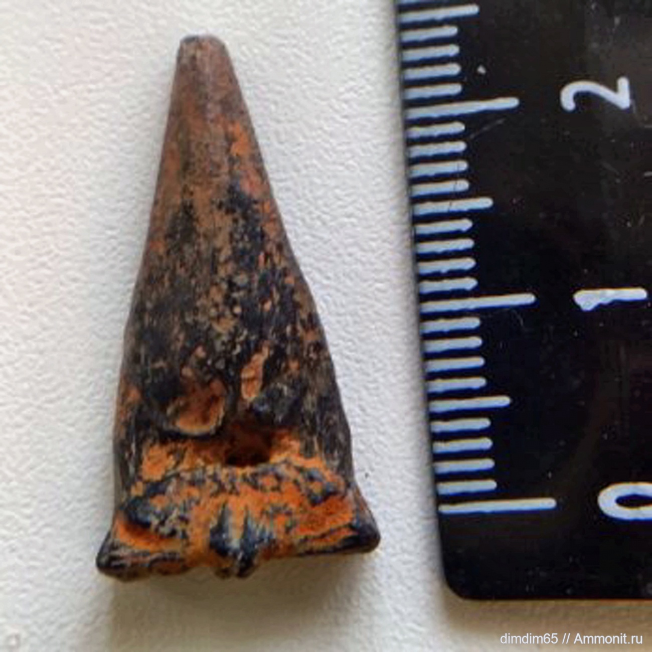 Найден на р. Сугатка при поисках зубов акул. Длина 2,5 см