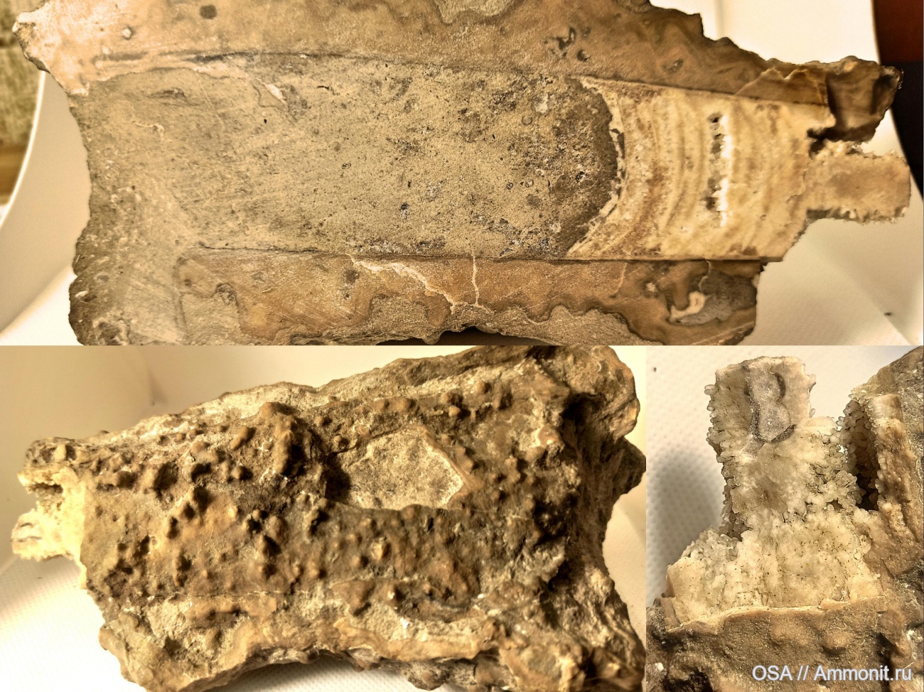 Раковина воткнулась в дно вертикально, заилилась внутри и стала субстратом для альвеолитов. Они и за печатали ее для нас. | ||||||