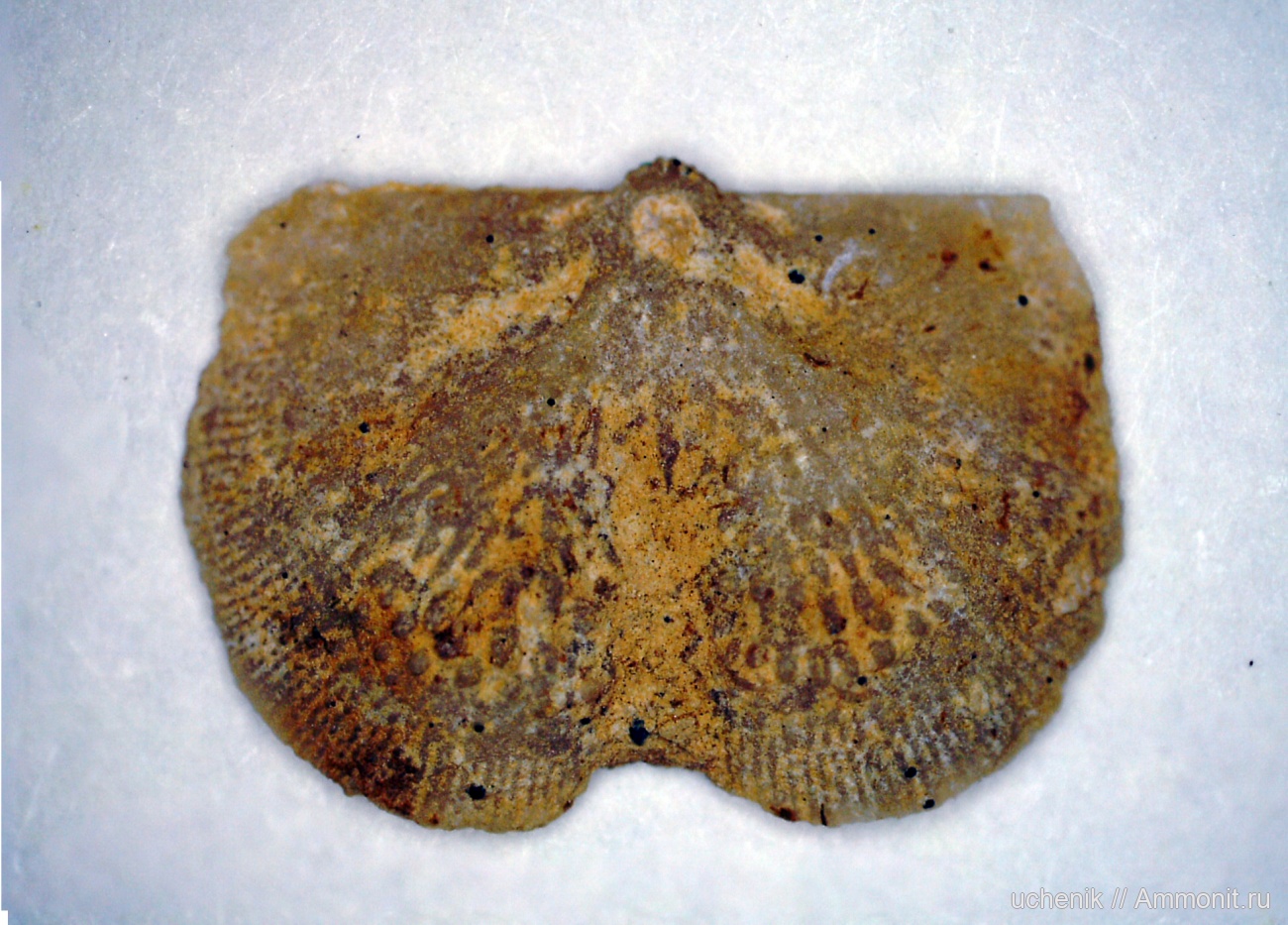 Что касается образца, я нашёл сходство с Chonetes, представленными на сайте, если ошибаюсь поправлю теги. Размер около сантиметра.