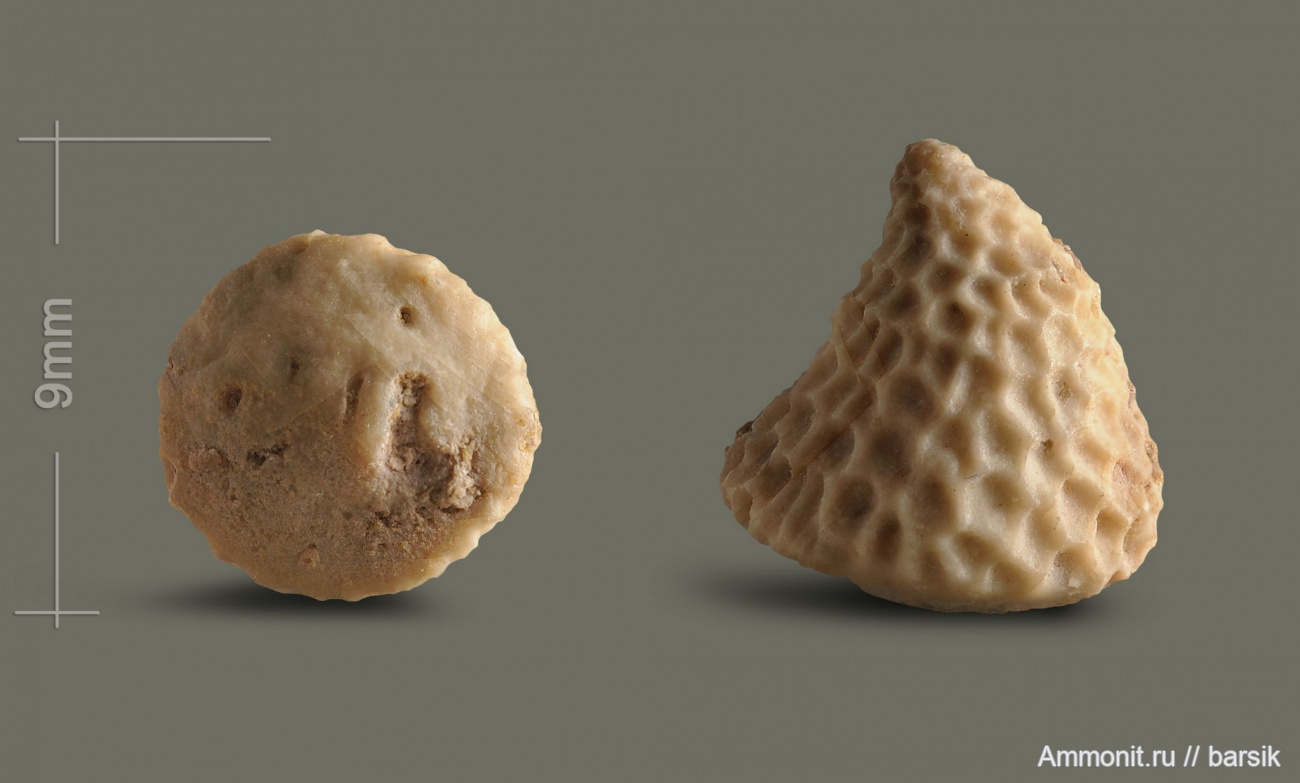 Этот «колпачек» нашел в галереях пользователей. Эокриноидея Bolboporites. Необычное иглокожее. Если правильно понял, то острием конуса она зарывалась в грунт, а из верхней площадки еще торчал стебельчатый отросток, который здесь не сохранился. Бабино.