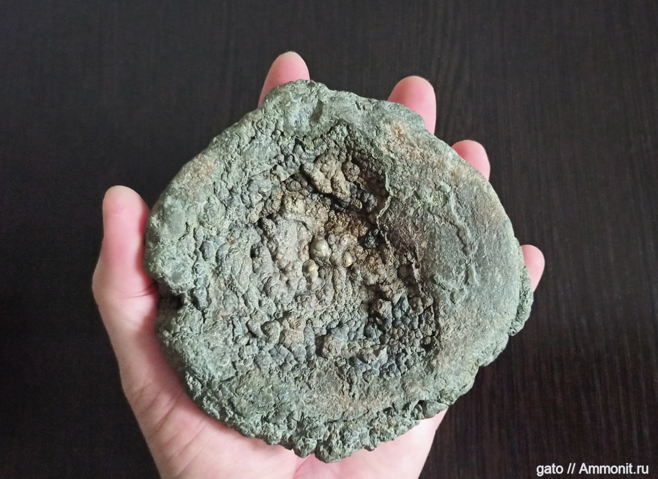 13 см в диаметре - вполне себе нередкий размер. Этот позвонок сильно изношен и пиритизирован по краям, так что определить положение в позвоночнике затруднительно. В том числе похоже на заднехвостовой (предсгибный) позвонок, в таком случае ихтиозавр был реально внушительных размеров.