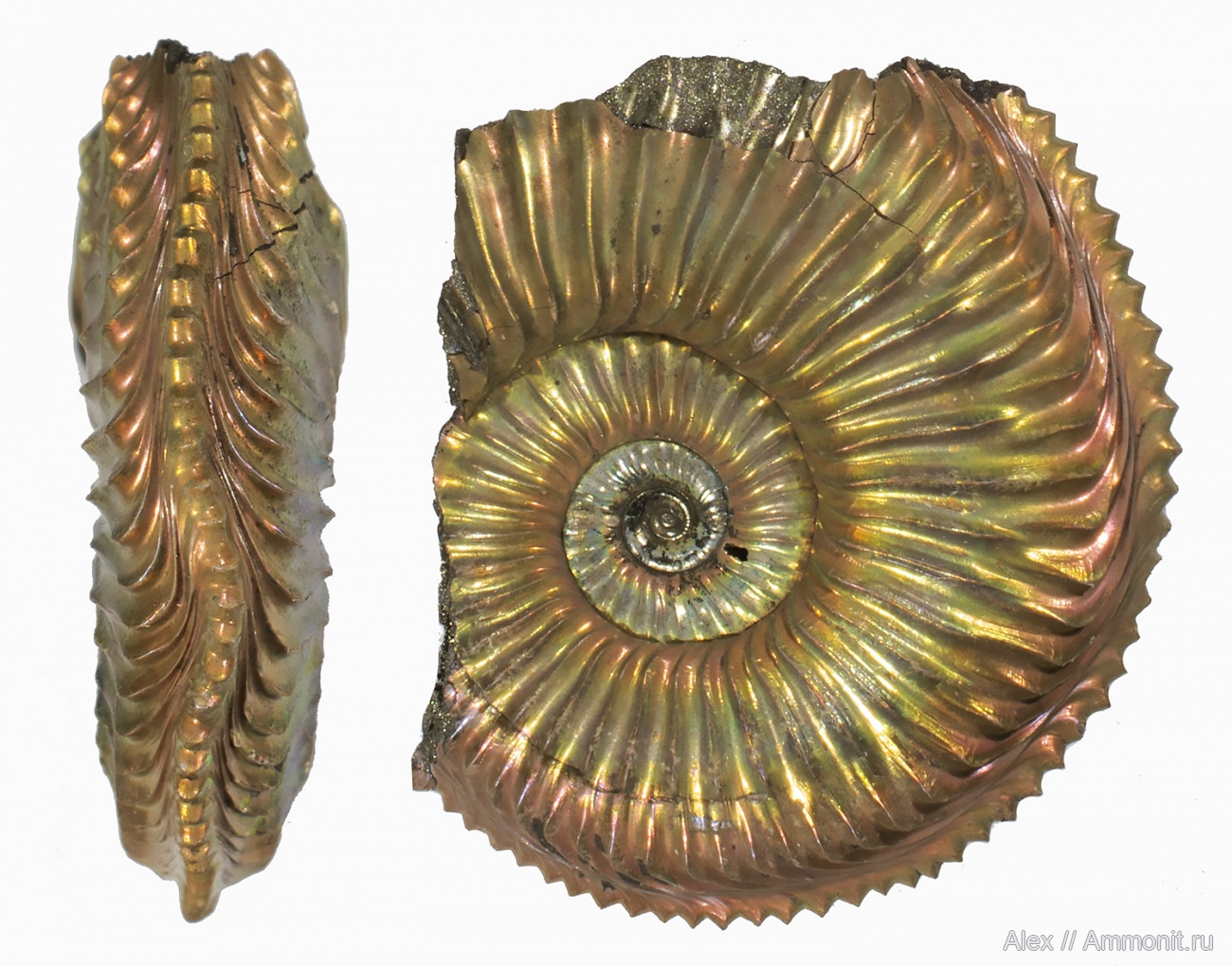 Спасибо! Они действительно очень красивые. Причем этот блеск - это настоящий перламутр, не пирит (он внутри и тут виден только в верхней части правого фото), а настоящий оригинальный арагонит. Правда, наверняка пропитанный дополнительной органикой из оксфордских глин. | ||||||
