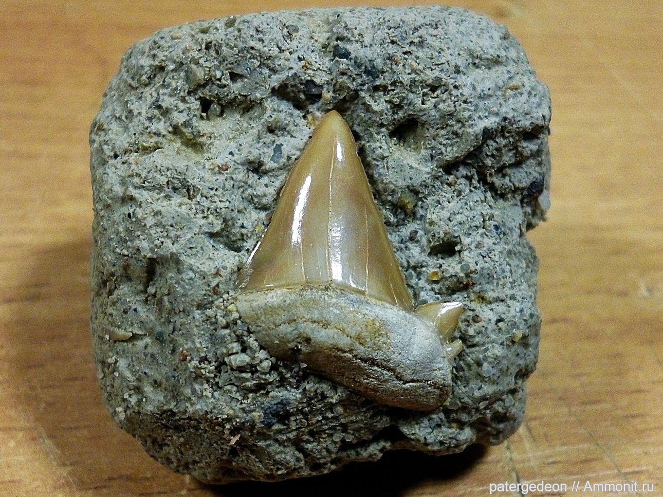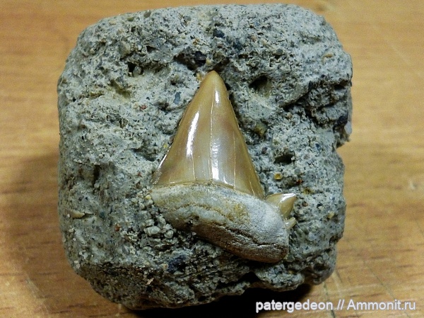 И всё же это кретолямна. Корень короткий и плоский. Зубцы раздвоенные. Смутила широкая коронка. Итак: Cretolamna maroccana, Марокко, верхний мел, маастрихтский ярус. | ||||||