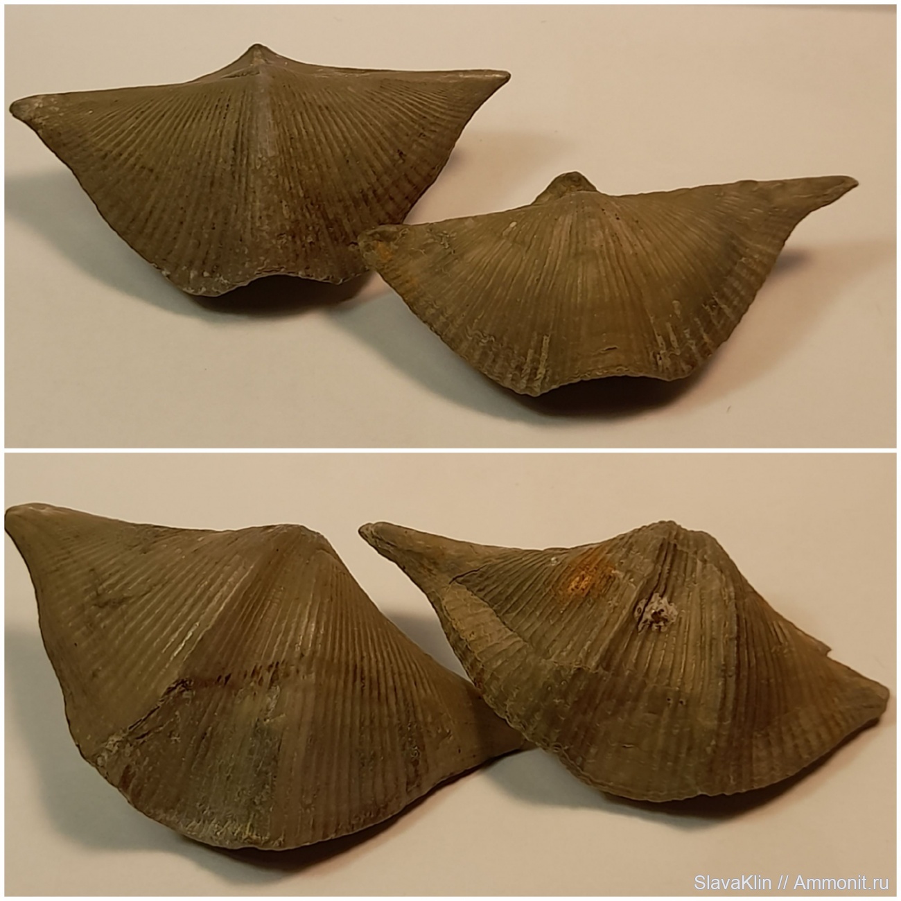 Это называется внутревидовая изменчивость. Обе брахиоподы Cyrtospirifer rudkinensis. Возраст франский ярус, нижнесемилукский подгоризонт(рудкинский). Воронежская область, деревня Рудкино. | ||||||
