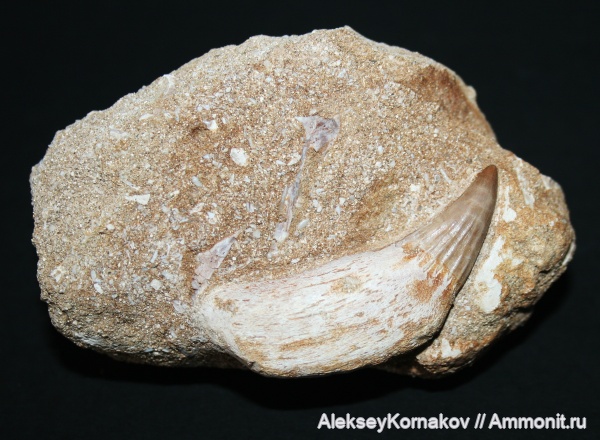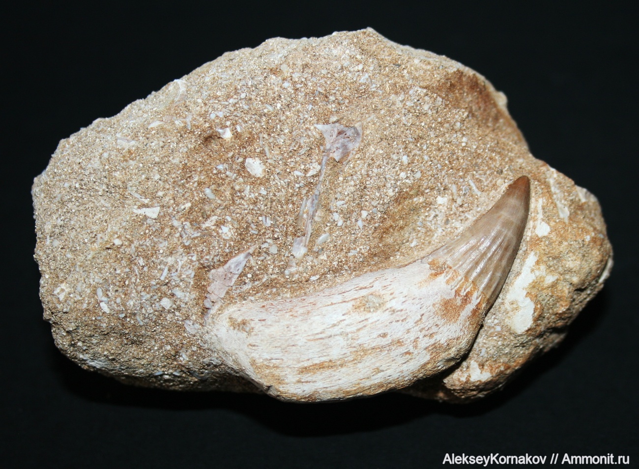 Еще один зуб мозазавра Platecarpus ptychodon (Arambourg, 1954) или Gavialimimus almaghribensis ? с корнем на родном матриксе.