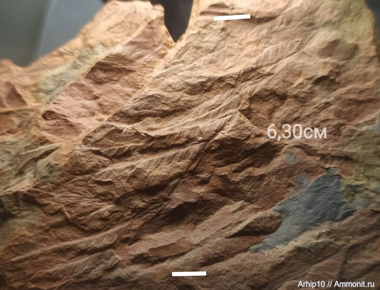 Pecopteris - условный род. Это пример ПЕКОПТЕРИДНОГО крепление пёрышек последнего порядка. А так, это папоротник Dactylotheca plumosa. | ||||||
