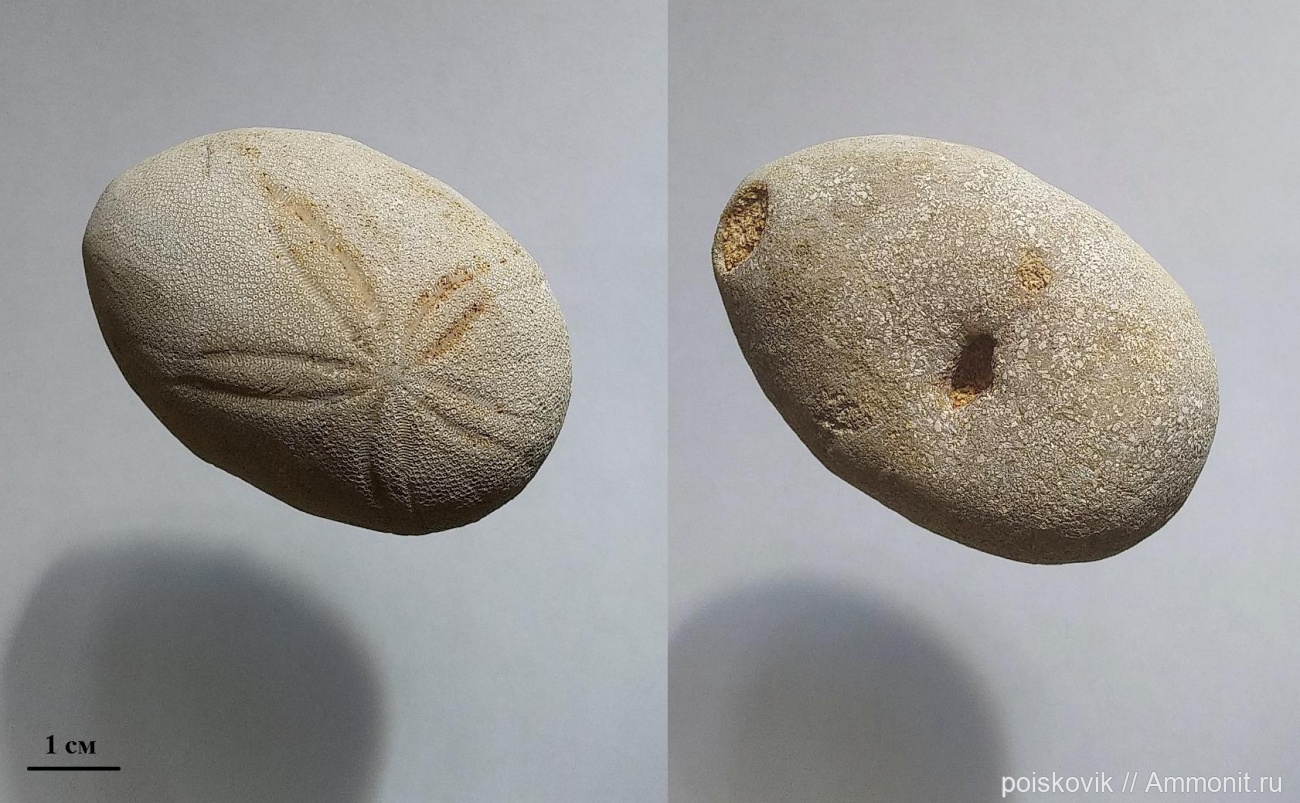 Морской еж (в 2-х проекциях) из эоценовых известняков в окрестностях с. Пролом
