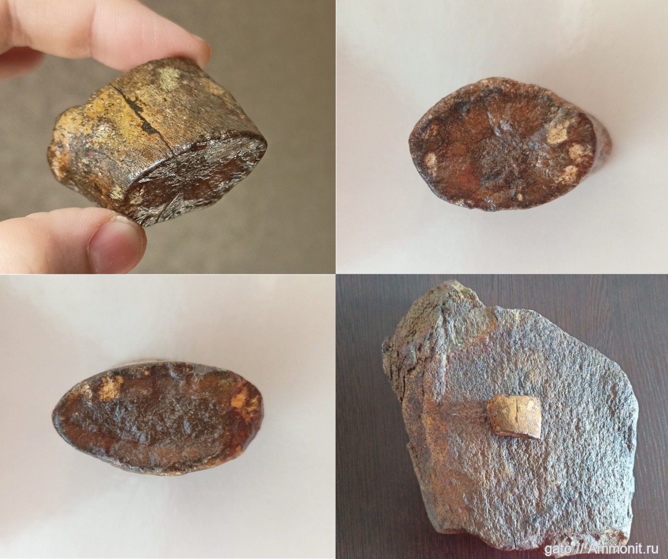 Обломок проподиальной (плечевой или бедренной) кости плезиозавра. Честно говоря, такого мелкого размера больше не видел. Однако, если экстаполировать по Фото из книги Юрские морские рептилии Москвы и Подмосковья, плезиозавр будет 1,5+ метра длиной (как на рисунке), бОльшая часть которой придется на шею.