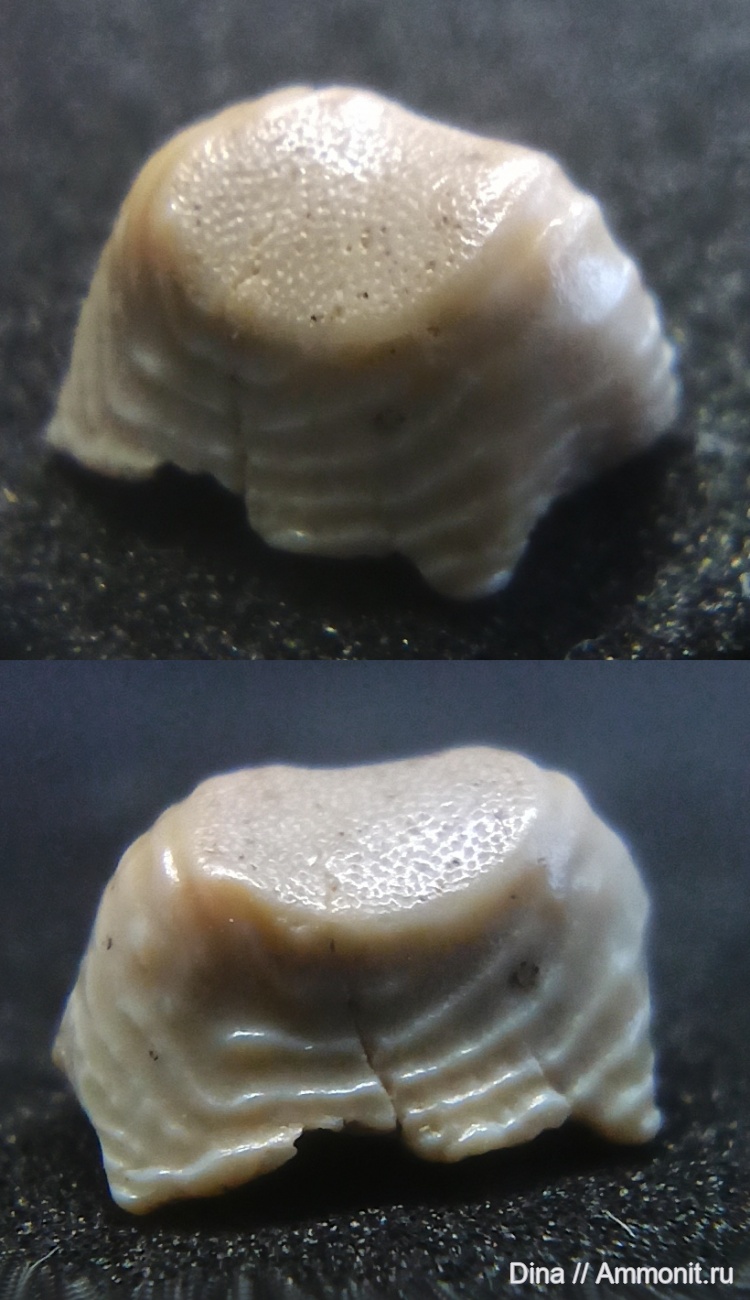 В дополнение к посту Irinashahurina Ptychodus anonymus с прижизненным стачиванием эмали выкладываю маленькую коронку зуба птиходуса из Малого Пролома с прижизненной стертостью.